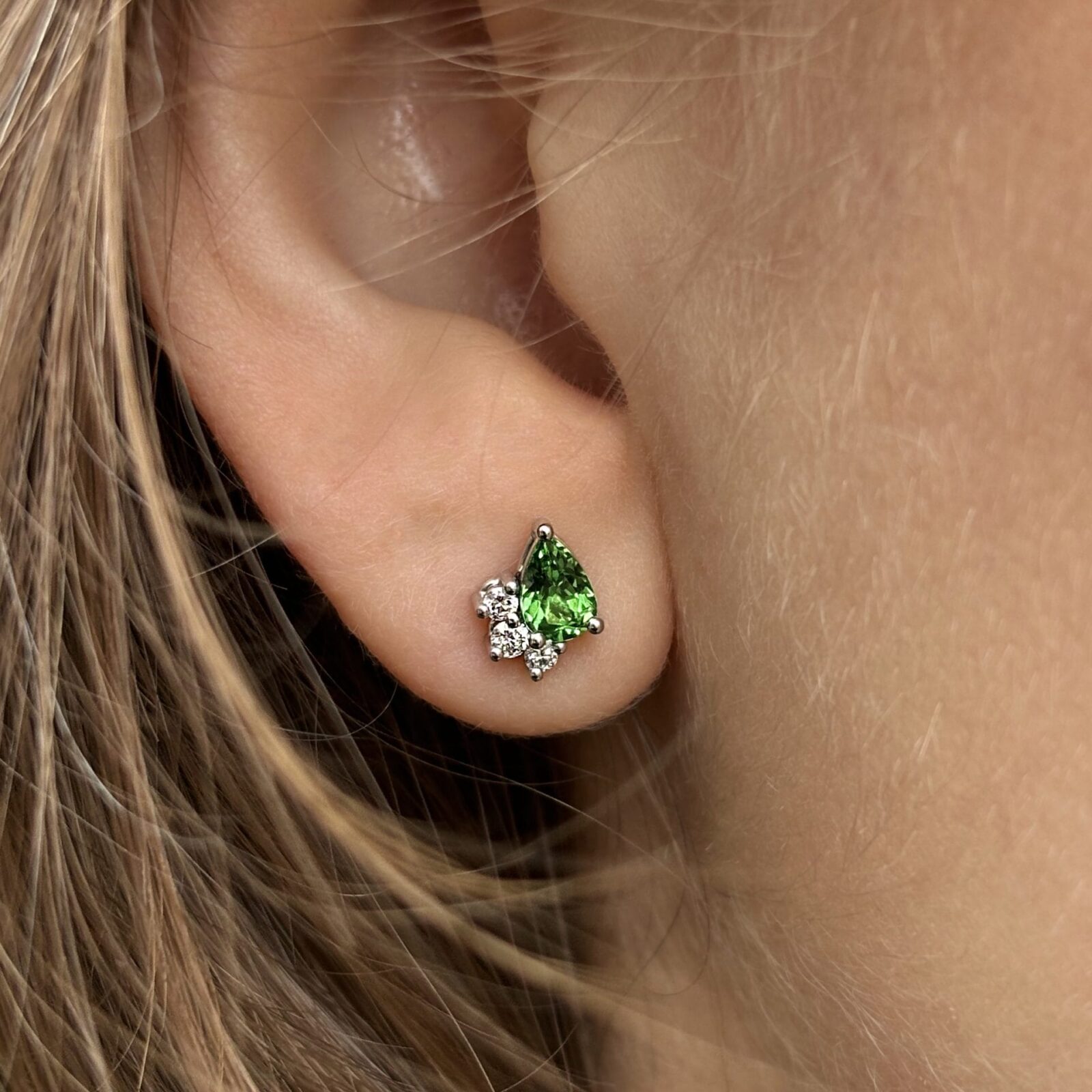 Ces boucles d’oreilles sont d’une élégance incomparable. L’or blanc, emblème de raffinement, se fond parfaitement avec la puissance et le vert unique des Tsavorites, offrant ainsi un bijou d’une beauté saisissante.