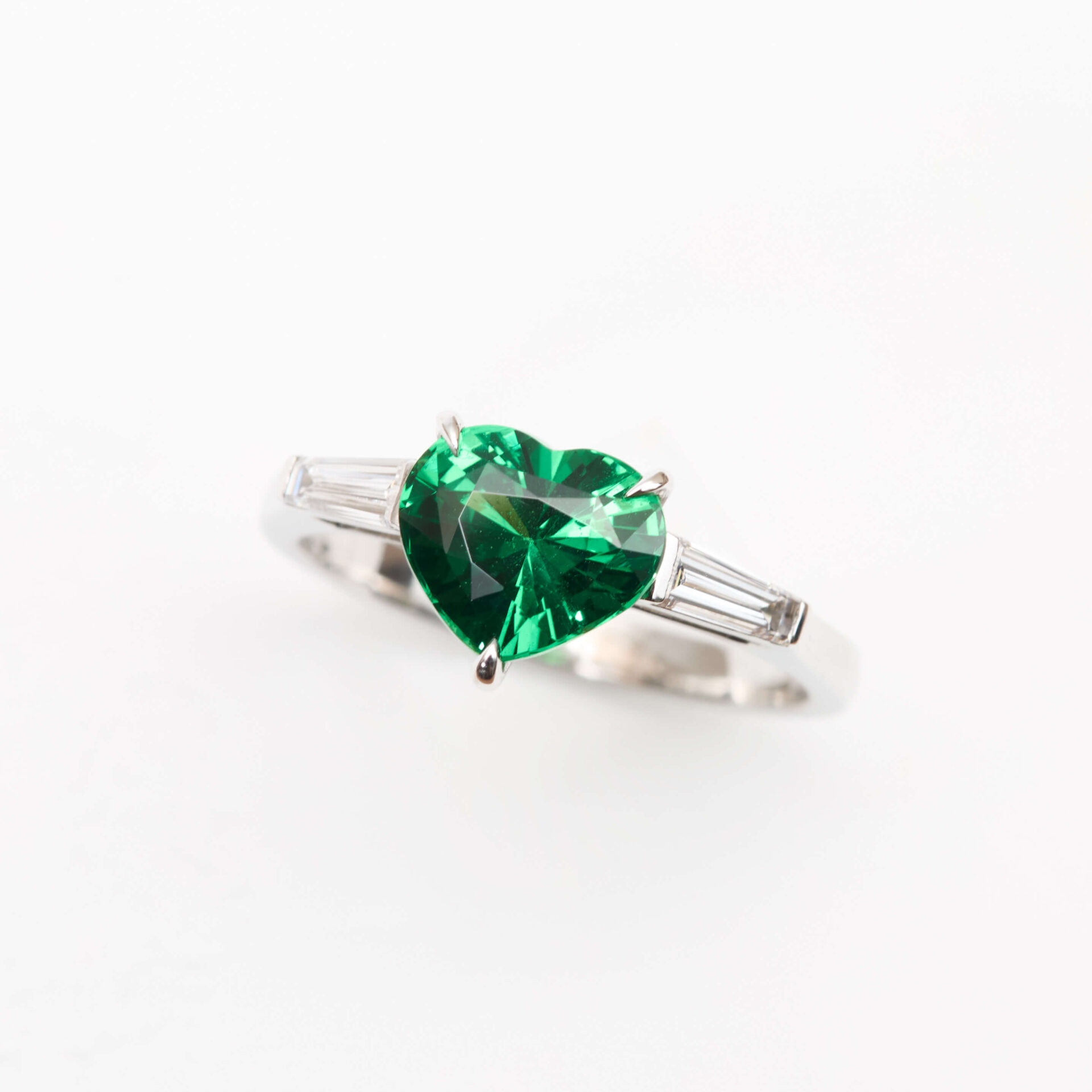 - Bague Elahera en or blanc 18 carats, sertie d’une Tsavorite de 2.11 carats accompagné de diamants tappers 0.38 carats.