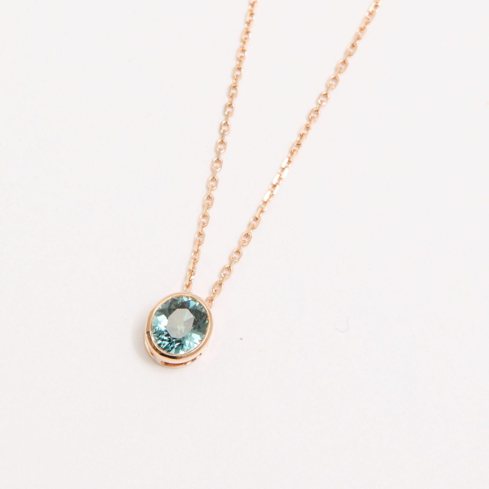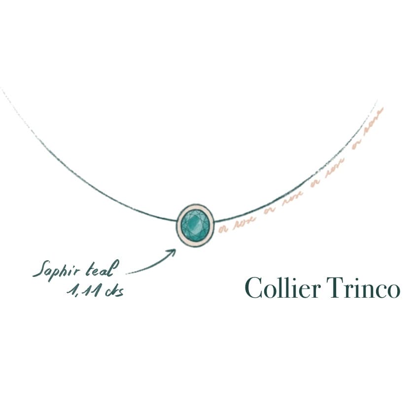 - Collier Trinco en or rose sertie d’un Saphir Teal de forme ovale de 1.11 carats.